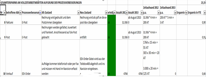 - Berechnung der Kosten- und Zeitersparnis (€ und FTE)
